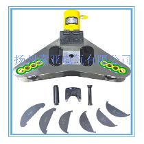 由手動泵(電動泵)(16),,快速接頭(2), 工作缸(1),方檔塊(3) ,上花板(4),下花板(5),輥柱(6),R模板(7),夾板模頭(8),直角模頭(9),聯桿板(10),銷子 (11),小車(12),高壓輸油管(13)等組成。